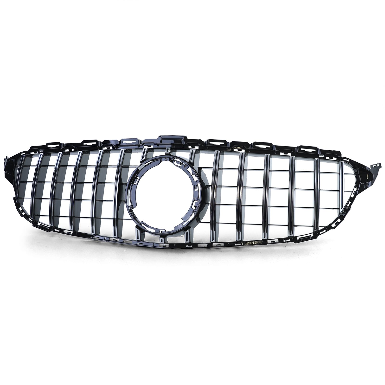 MERCEDES W205 Kühlergrill Glanz Schwarz/Chrome – Panamericana-Look – Gitter Optik – Frontkamera – Limo/T-Modell/Cabrio/Coupe