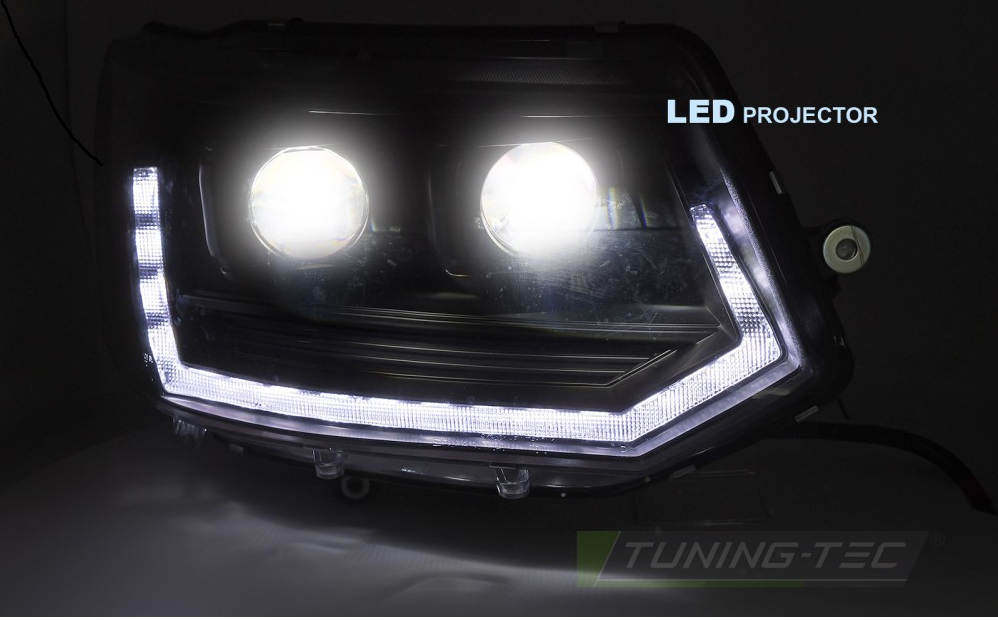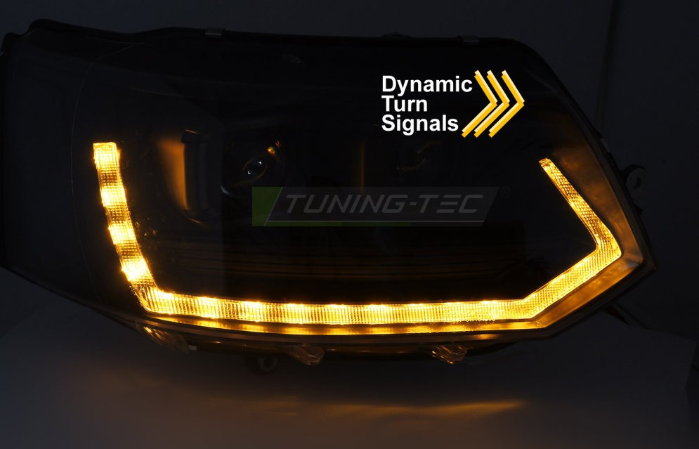 Voll-LED-Scheinwerfer, T6-Optik, schwarzes Tagfahrlicht, sequenziell, passend für VW T5 (2010–2015)